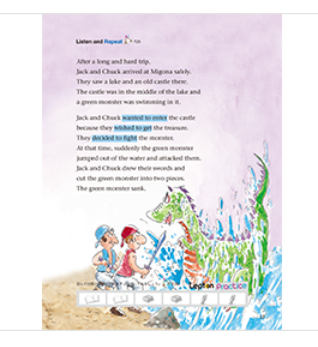 初級では、身近なくらしに関わる会話表現を覚えたり、外国の童話などの簡単な読み物を通して長文に触れていったり。初級の後半では、英語を聞いて記憶して書き取る“ディクテーション(dictation)”の練習も行ったり。これは力が付きそうです。