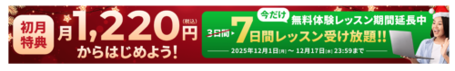 - 内容:初めて無料会員に登録した人対象に、7日間スタンダードプランのレッスンが受講し放題