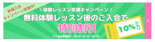 - 適用条件:無料会員登録を行なった日から2日以内に初回無料体験レッスンを受講した人対象