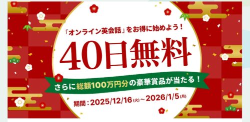 ➡内容:キャンペーン期間中に、ポイント定期プランに新規加入した人を対象に、初月レッスン料の全額をキャッシュバック(3ヵ月の継続プラン加入が条件)※エントリーが必要