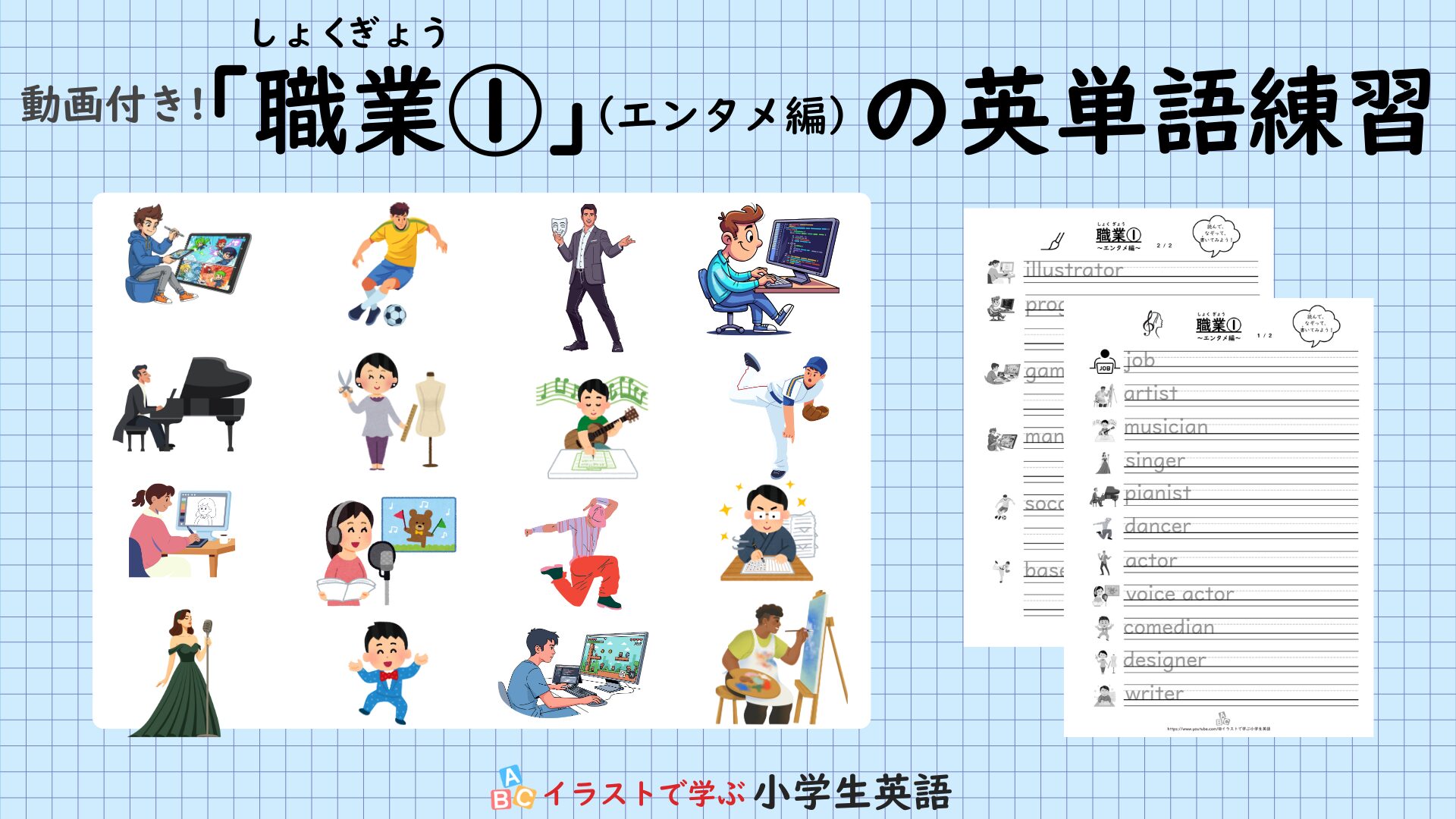 【小学生の英単語】「職業①(エンタメ編)」一覧&無料プリント(動画付き)