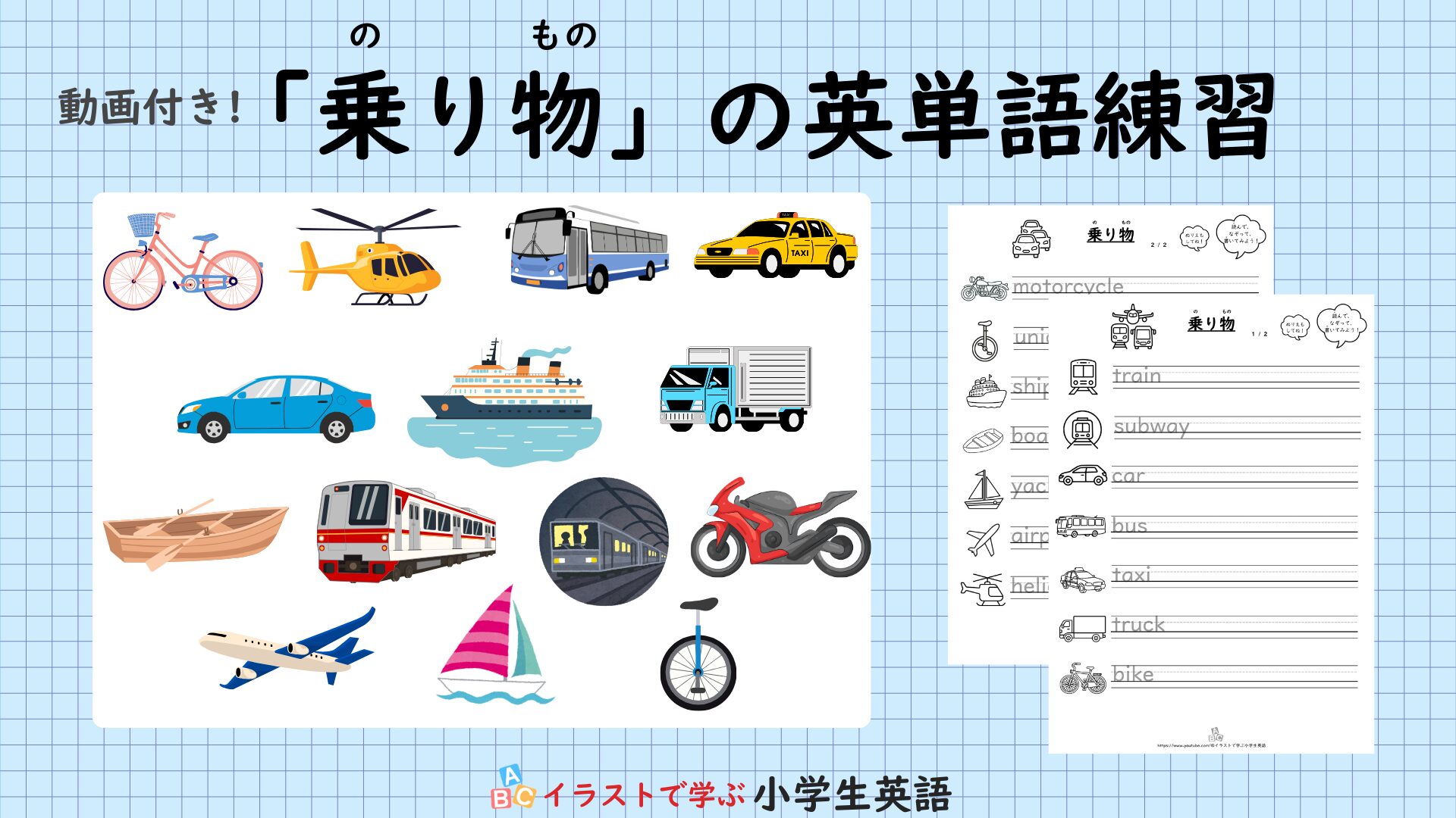 【小学生の英単語】「乗り物」一覧&無料プリント(動画付き)